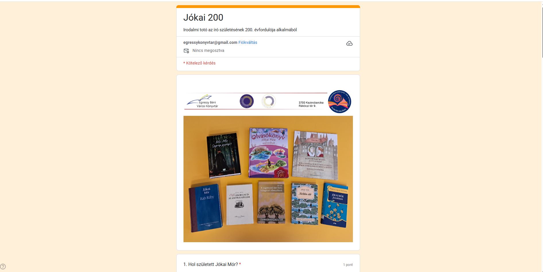 | Irodalmi totó az író születésének 200. évfordulója alkalmából. |